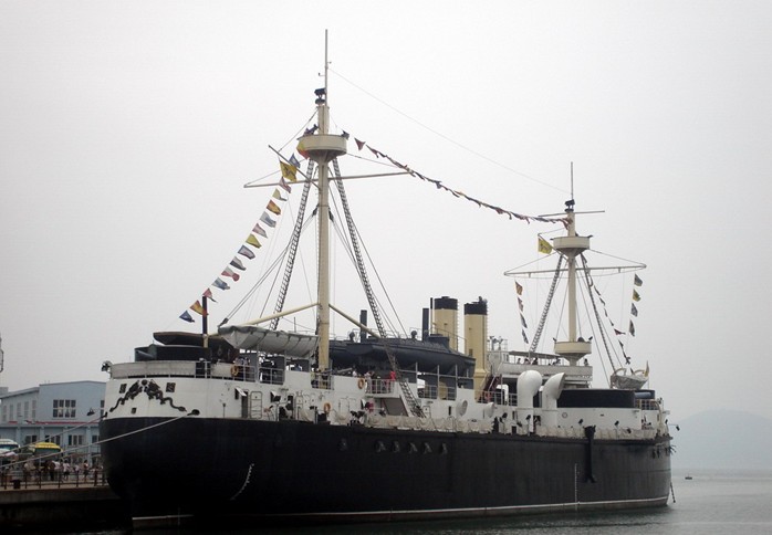 定遠(yuǎn)艦是清政府花費(fèi)近170萬兩白銀向德國訂造的一艘戰(zhàn)艦,是當(dāng)時(shí)世界海軍中罕見的大型鐵甲艦,其裝甲厚,噸位大,炮火重,利于防御,號稱“第一鐵艦”。該艦由德國伏爾鏘造船廠制造,1883年11月28日下水。