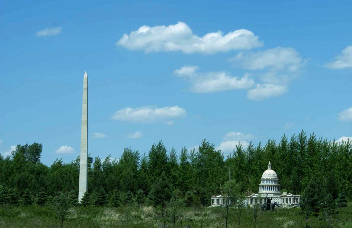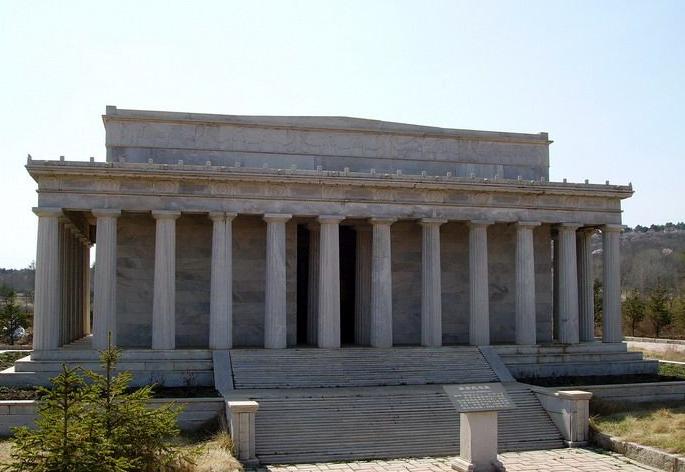 在美國南達科他州西南部海拔約1892米的布萊克山區(qū),一座高峰上刻鑿著美國歷史上卓具功勛的四位總統——華盛頓、杰斐遜、林肯和羅斯福的石雕頭像。每座頭像高18米,從1927年開始雕鑿,1941年才初步告成。四尊頭像充分展露其凝練的神態(tài),他們目光前視,儀表莊嚴,用以代表美國業(yè)績的四大象征:創(chuàng)建國家、政治哲學、捍衛(wèi)獨立、擴張與保守。總統山已不單是這個地區(qū)和城市的標志,而且成為全美國教育的重要藝術中心。