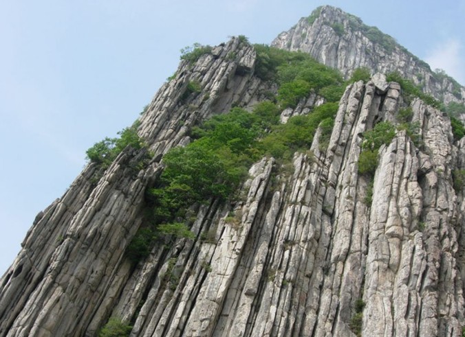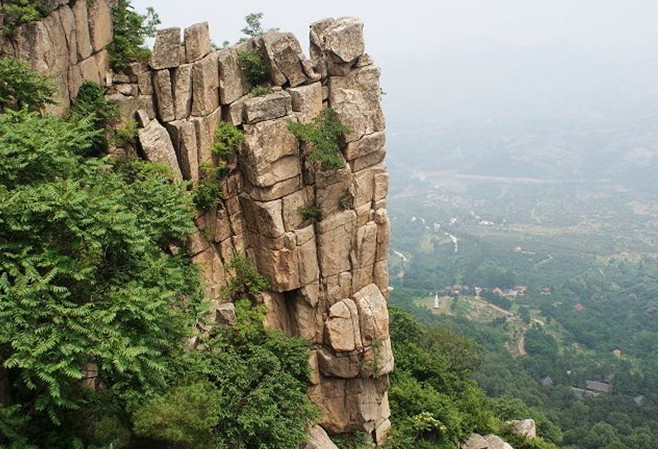少室頂,其東北隅有石壁,版權(quán)所有山東聊城聊之旅國際旅行社有限公司,轉(zhuǎn)載必究!自山巔至底部一斧直削,高數(shù)百仞,俗稱“百丈崖”。崖間罅隙、石坎、孔穴頗多,是鳥類的安樂窩。每至晨夕,百鳥啁啾爭鳴,崖半翩翩飛舞,酷似一所“百鳥園”。循新修石階,攀至其巔,但見滿目玄巖怪石,樹木稀少,惟有矮小的側(cè)柏和荊棘灌叢,強生石縫間,點綴藍天懸峰。