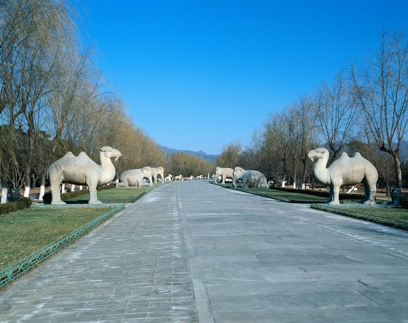 大紅門后的大道,叫神道,也稱陵道。起于石牌坊,穿過大紅門,一直通向長陵,原為長陵而筑,但后來便成了全陵區(qū)的主陵道了。該道縱貫陵園南北,全長7公里,沿線設(shè)有一系列建筑物,錯落有致,蔚為壯觀。