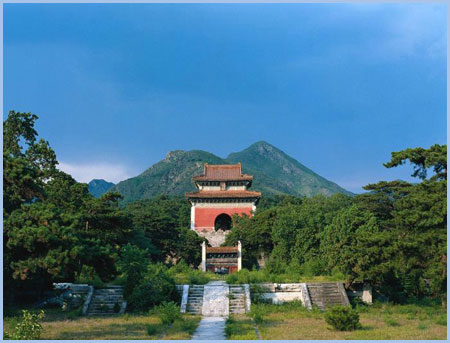 大紅門 坐落于陵區(qū)的正南面,門分三洞,又名大宮門,為陵園的正門。大門兩旁原各豎一通石碑,上刻"官員人等至此下馬"字樣。凡是前來祭陵的人,都必須從此步入陵園,以顯示皇陵的無上尊嚴。大門兩側(cè)原設(shè)有兩個角門,并連接著長達80華里的紅色圍墻。在蜿蜒連綿的圍墻中,另設(shè)有一座小紅門和十個出入口,均派有重兵駐守,是百姓不可接近的禁地。現(xiàn)在這些圍墻都早已坍塌,有些殘跡尚依稀可辨。
