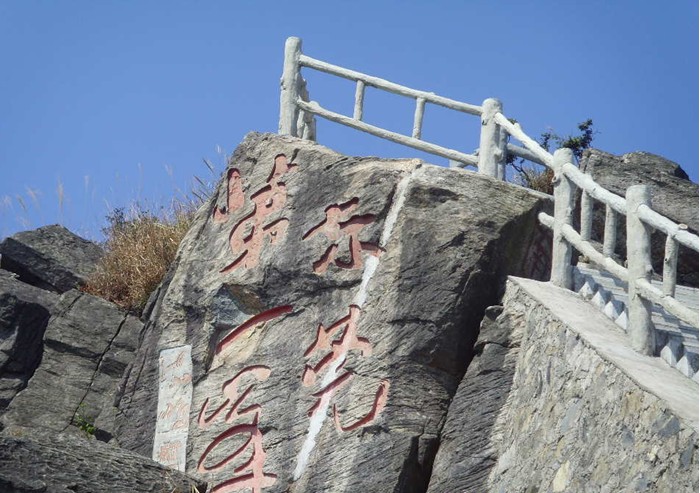 觀花樓是一個仿古建筑的亭臺,這里是觀賞銀屏牡丹的最佳位置。遺憾的是現(xiàn)在已經(jīng)是深冬季節(jié),銀屏牡丹也只剩下了一桿枯枝。站在亭臺看對面的懸崖上題寫著:“銀屏奇花”四個字,順著奇字看上去,大約一米之高處就是銀屏牡丹生長的地方。