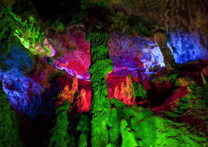最妙的要數(shù)洞內(nèi)的"四絕"、"三奇"景觀。"四絕"為天溝、天板、天漕,玉螺賬,石鵝管和天外飛瀑。"三絕"為鐵索寒橋、雙井開天、地下長河。此外,"龍?zhí)堵牆?、"群猴朝圣"、"洞中大龍湫"、"九龍壁"、"石葡萄"、"石褶裙"、"石針"、"石筍"、"葫蘆壽星"、"猴子撈月亮"、"八戒照鏡子"等景點(diǎn),以及王喬煉丹留下的勝跡,惟妙惟肖,令人目不暇接,嘆為觀止。