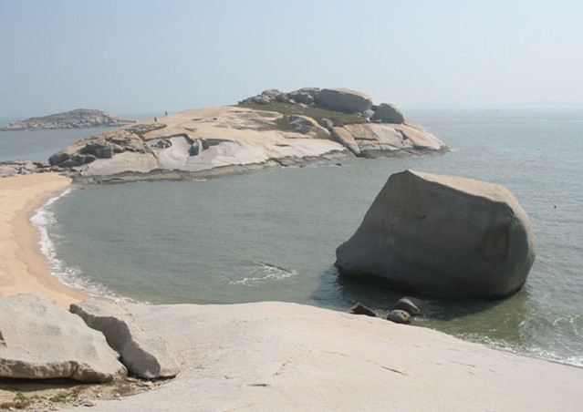 在島南部的山利村前,由5個(gè)相連小峰組成,距縣城約10公里,在方圓0.6平方公里的低丘陵中,遍布著球狀風(fēng)化花崗巖體,體碩大,形態(tài)各異,其中奇特與象形的山石景觀有30多處。如綿羊峰的“鴛鴦理翅”、“新舊悟空”、“石上榕樹”、“綿羊臥崗”,鱷魚峰的“花豹巡山”、“八戒亮相”、“熊豚對(duì)峙”、“蒼鷹雄視”,仙女峰的“唐僧問(wèn)路”、“西域頭陀”、“一孔窺天”,神雕峰的“烏龜?shù)缴?rdquo;、“情人相見”、“八戒養(yǎng)神”,青蛙峰的“澳洲袋鼠”、“馬飲雞啄”、“金猴回首”和“企鵝觀狗”等。石景周圍,遺存的堡壘、壕溝縱橫交錯(cuò)。