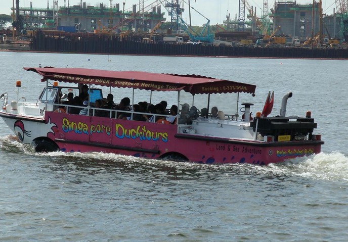 “鴨子船”極受游客歡迎,香港人愛(ài)把乘“鴨子船”沿新加坡河的觀光稱為“游車河”,在新達(dá)城乘坐鴨子船,陸地將經(jīng)過(guò)世界大戰(zhàn)紀(jì)念碑,在水上欣賞薛爾思橋及魚(yú)尾獅的噴水景觀。