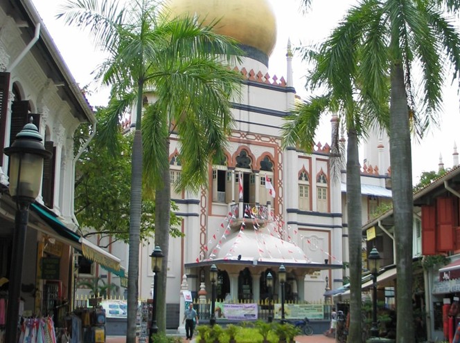 蘇丹回教堂(Sultan Mosque)是新加坡5座被列為國家古跡之一的回教堂,外觀最堂皇的。它有洋蔥型的大圓頂,對稱的宣禮塔,有點像印度的泰姬陵。回教堂位于甘榜格南歷史保留區(qū),建造于20年代,歷史雖然并不是最悠久的,但是這座回教堂對本地回教徒來說卻有特別意義。主要的原因是甘榜格南是新加坡最悠久的回教族群聚居地。這里不少街道都是以中東地名命名的。