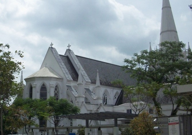 一座潔白的歌特式教堂,高高的尖頂直插藍(lán)天。像一位高大而圣潔的神的使者,他默默佇立在喧囂的市中心,卻讓每一個(gè)見(jiàn)到他的人,心中都會(huì)不由自主地生起向往和敬畏。這就是新加坡最著名的一座教堂——圣安德烈教堂。 潔白亮麗的外墻是圣安德烈教堂最傲人的特點(diǎn)之一。經(jīng)歷了一百多年的滄桑卻仍舊那么光彩照人,“就是青春無(wú)瑕”,傳說(shuō)肌膚勝雪的圣安德烈教堂,據(jù)說(shuō)是將貝殼磨成灰,加入蛋白和糖調(diào)成糊狀,再放入浸泡到柔軟的椰子殼,就制成了一種實(shí)用又美觀的石膏。將其涂在建筑的表面,不容易出現(xiàn)裂痕,而且潔白有光澤。