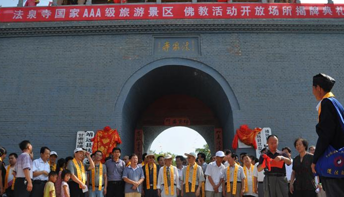 法泉寺,又名“紅山石崖禪寺”,是靖遠八景之首,素有“法泉地靈”之稱。法泉寺始建于北魏,距今已有1400多年的歷史。經(jīng)過隋、唐、五代及宋、元、明、清等10多個朝代的修鑿,雕塑、壁畫數(shù)量眾多,殿字樓閣皆依崖而建,連為一體,非常雄偉壯觀。因巖崖之F有泉水涌出,崖半山腰間又有“墨池”、“月牙”、“龍骨”三泓清泉,以“法門”和“清泉”立說,這也就是“法泉寺”名字的由來了