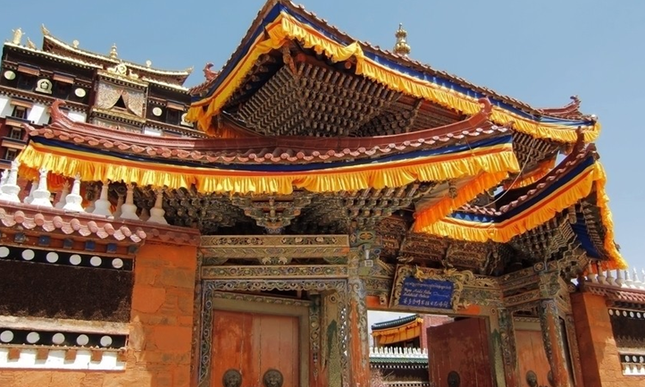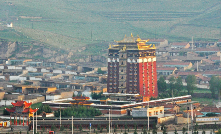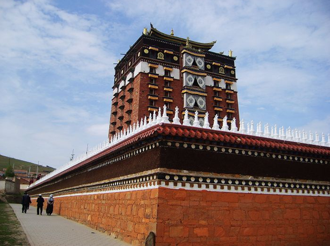 位于甘肅安多藏區(qū)合作市,它的全稱是“安多合作米拉日巴九層佛閣”,名字雖然有點兒長,卻也講得很明白。始建于清乾隆四十二年(1777年),原建樓閣已毀于“文革”。現(xiàn)存建筑重建于1988年5月,歷時四年落成。米拉日巴佛閣是為紀念米拉日巴而修建的佛閣。是藏傳佛教噶舉派(白教)在安多藏區(qū)最主要的填充院。