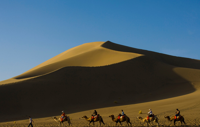 敦煌鳴沙山位于祖國西北,是絲綢之路上神奇瑰麗的旅游勝地之一。