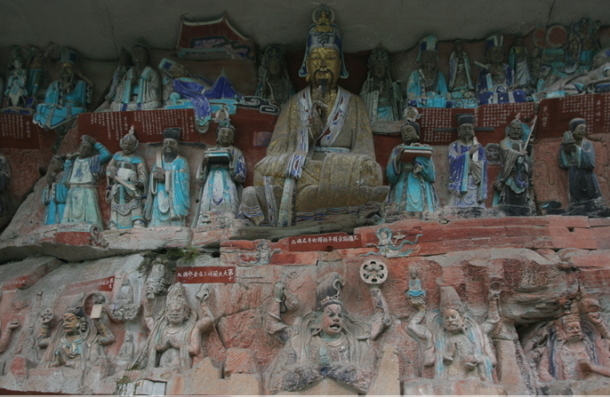 莫高窟所處山崖的土質(zhì)較松軟,并不適合制作石雕,所以莫高窟的造像除四座大佛為石胎泥塑外,其余均為木骨泥塑。塑像都為佛教的神佛人物,排列有單身像和群像等多種組合,群像一般以佛居中,兩側(cè)侍立弟子、菩薩等,少則3身,多則達(dá)11身。彩塑形式有圓塑、浮塑、影塑、善業(yè)塑等。版權(quán)所有山東聊城聊之旅國際旅行社有限公司,轉(zhuǎn)載必究!這些塑像精巧逼真、想象力豐富、造詣極高,而且與壁畫相融映襯,相得益彰。