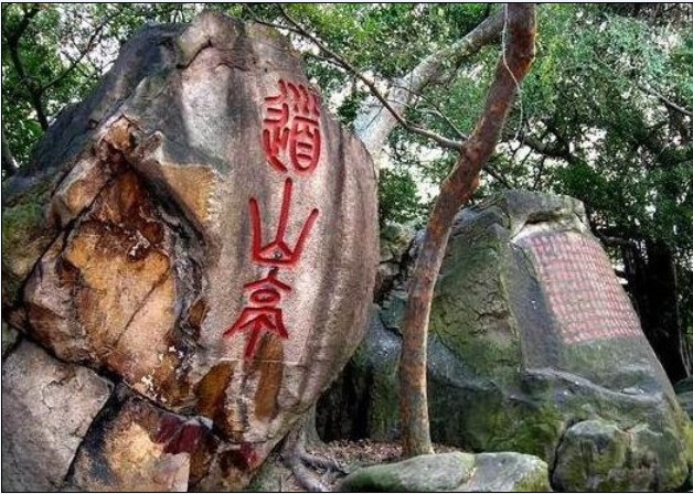 道山亭周邊古木參天,濃陰郁郁;怪石嶙峋,有宋、元、明代摩崖題刻十余段。亭南側的一株古榕,頑強地生長在石徑旁的崖壁上,稱“瀑布榕”,樹齡百年以上,被列為福州市二級保護古樹。古榕主干胸圍6米多,離地面不到1米半即一分為三。樹高不過15米,但支干發(fā)達,超過18支,大多彎向南側,沿著陡峭的石壁高抬低走,向下斜伸十幾二十米,部分支干覆蓋道山亭,整個樹冠呈倒人字形,猶如一把撐天大傘,大樹底下好乘涼。古榕氣根不僅多,而且條條氣根與古榕主干、支干相互連體;樹根為尋求水分、養(yǎng)料,網裹著巖壁攀延十數(shù)米,好似瀑布在平滑的巖石面傾瀉而下,蔚為壯觀,“瀑布榕”因此而名。道山亭西側有塊自然天成的花崗巖石,高2米多,形狀似大印章,西向篆刻“天章臺”三個大字,為程師孟所書。天章臺為烏石山三十六奇景之一。道山亭東側的兩塊東西并列的蛤蟆石,有兩人多高,仿佛兩只蹲姿蛤蟆,活靈活現(xiàn)。版權所有山東聊城聊之旅國際旅行社有限公司,轉載必究!其中一只瞪大眼睛仰望天空,另一只上半段為雷所劈,傳說它原來成天想吃天鵝肉,被雷劈去半個頭,剩下一只也就不敢亂動了。程師孟篆書“道山亭”三個大字,鐫在東頭那只蛤蟆的胸腹處,摩崖題刻朝北向,高2.2米,寬0.85米,字徑0.7米。道山亭北側巖壁鐫曾鞏《道山亭記》全文,摩崖題刻北向,高2米,寬5米,楷書;崖題刻朝北向,高2.2米,寬0.85米,字徑0.7米。道山亭北側巖壁鐫曾鞏《道山亭記》全文,摩崖題刻北向,高2米,寬5米,楷書;2008年福州市人民政府重鐫,由書法家張潛華書寫。