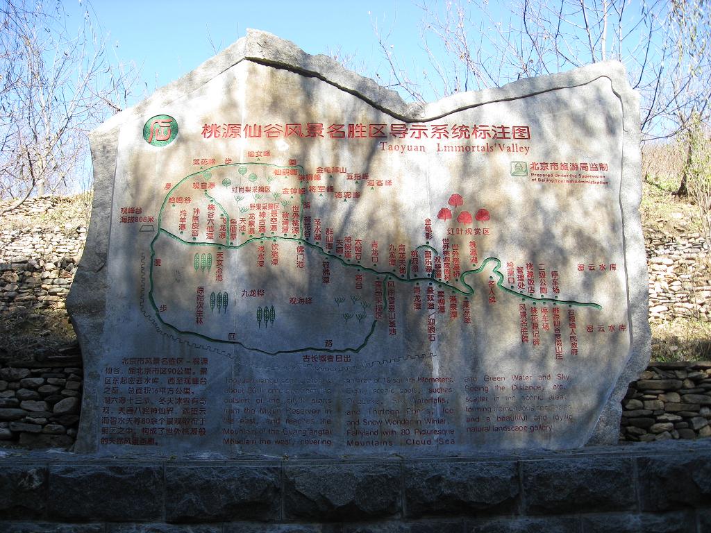 桃源仙谷風景名勝區(qū),距北京90公里,東起密云水庫西岸,西至觀峰臺頂巔,全長8公里,總面積16平方公里,景區(qū)峽谷森林茂密,潭瀑眾多,山峰雄偉,環(huán)境潔美,特別是“一湖六瀑十三潭,冬天冰雪有奇觀,天畫八峰神仙界,遠望云海碧水天”等80余景觀鑲嵌其中,構(gòu)成了世外桃源的一幅天然風景畫廊。
