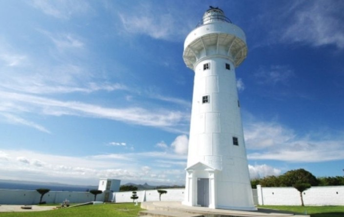 二次大戰(zhàn)時被美軍炸毀,戰(zhàn)后依原建筑修復(fù)迄今。塔身全白,為圓柱形,為白鐵制,塔高24.1米,塔頂換裝新式大型四等旋轉(zhuǎn)透鏡電燈,經(jīng)過大型旋轉(zhuǎn)透鏡后,光力為1,800,000支燭光,每十秒一閃,照射距離達二十七點二浬,是目前臺灣光力最強的燈塔,被稱為“東亞之光”。