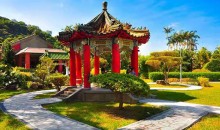 文武廟山后有羊腸小徑,迂回下抵潭東北角的孔雀園。園中飼養(yǎng)150多只孔雀,每見艷裝游人便意相開屏,羽翎五光十色,光彩耀目。