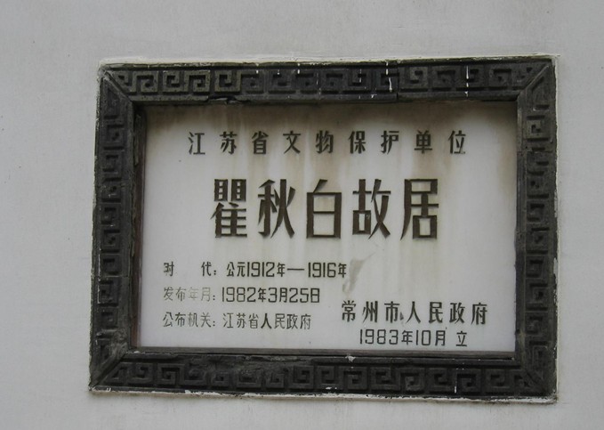 瞿秋白故居,于1982年3月25日由江蘇省人民政府公布為江蘇省文物保護單位。經(jīng)中共中央宣傳部批準。于1985年6月18日瞿秋白同志英勇就義50周年紀念日正式對外開放。紀念館門樓下的金字橫匾“瞿秋白同志紀念館”系鄧小平同志書寫。基本陳列《瞿秋白生平事跡展覽》在西院,《瞿秋白故居陳列》在東院。并推出《紀念瞿秋白書畫展》等專題陳列。