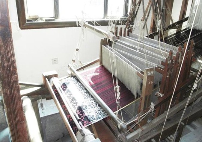 沿絲路右側(cè),一組沙漠駝隊的浮雕,形象生動,古樸渾厚,與半墻有機(jī)結(jié)合,顯示了漢唐以來絲綢之路的風(fēng)光特色。“古代館”的絲綢陳列,以其珍貴的絲綢文物及模型、圖片,展示了新石器時代晚期絲綢的起源,直到明清時期絲綢生產(chǎn)的沿革,它是一部濃縮了的中國古代絲綢史。絲綢離不開蠶桑,“蠶桑居”是根據(jù)近代農(nóng)家養(yǎng)蠶載桑的真實情景和桑園再造。跨進(jìn)“織造坊”,又是另一番景象,在這里可以見到各種類型的古代織機(jī)和傳統(tǒng)工藝的手工操作表演,猶如身臨明清時期蘇州絲綢業(yè)“東北半城,萬戶機(jī)聲”的繁榮境地。織女們身著古裝作現(xiàn)場表演。天鵝絨織機(jī)、漳緞織機(jī)、云錦織機(jī)、腳踏繅絲機(jī)、纟革絲機(jī),都在進(jìn)行運(yùn)轉(zhuǎn)操作,古代云錦、彩經(jīng)絨、纟革絲等著名絲綢品種的織造過程,在這里都得到充分演示。有一種工藝獨(dú)具特色,讓人看后舍不得離開,一塊巨大的石元寶下的凹槽里,放著纏有絲織品的木棍,一位藝人將兩腳踏在石元寶下的兩個突出部,然后晃動石元寶,通過碾壓,使絲綢變得柔軟平挺。光澤可鑒。這就是江南絲織工藝一絕的絲綢砑光處理。