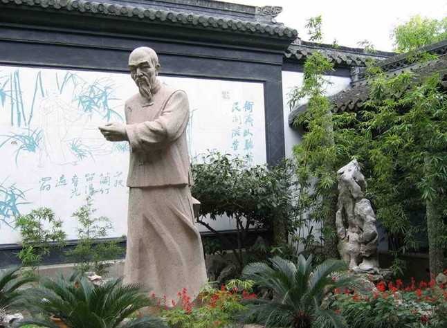 鄭板橋紀念館亦稱興化市博物館,位于城區(qū)中心地段,占地6000多平方米,粉墻黛瓦,曲廊環(huán)繞,系三層仿古建筑。館內庭院中板橋塑像矗立,奇石修竹輔之,有水池、池邊嵌石,犬齒相依,參差有致,逢夏季,池內睡蓮盛開,紅鯉穿梭其間,別有一番情趣。館內主要有《鄭板橋生平及藝術成就》、《興化歷代名人》、《施耐庵文物史料陳列》等陳列展覽。處正南的四牌樓上懸掛47塊匾,記載了興化歷史上74位前賢的事跡,為后人所景仰,匾上題字都出自當代著名書法家之手,版權所有山東聊城聊之旅國際旅行社有限公司,轉載必究!具有很高的藝術欣賞價值。 故居北屋掛有一幅漆畫,漆畫兩側的對聯(lián)是鄭板橋在范縣任上所作:“秋從夏雨聲中入,春在寒梅蕊上尋。”原在東西兩側的蘭石圖和墨竹圖都是清代原物,現(xiàn)都已被收藏。