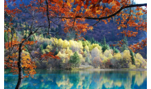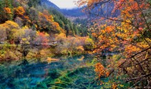 秋:秋天是九寨溝最為燦爛的季節(jié),五彩斑斕的紅葉,彩林倒映在明麗的湖水中。繽紛的落在湖光流韻間漂浮。悠遠的晴空湛藍而碧凈,自然自造化中最美麗的景致充盈眼底。