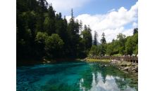 九寨溝的活水泉又異常潔凈,加之梯形狀的湖泊層層過濾,其水色愈加透明,能見度高達20米。翠海、疊瀑、彩林、雪峰、藏情,被譽為九寨溝“五絕”。水乳交融,美不勝收。現(xiàn)代肖草《九寨溝》詩:“放眼層林彩池漣,魚游云頭鳥語歡;飛瀑灑落拂面來,九寨山水揚海天”給予真實詮釋。