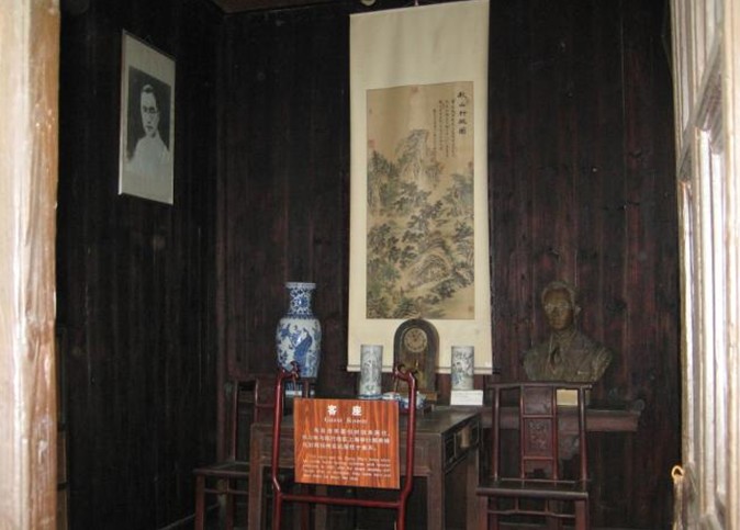 這些清代木椅、案幾、八仙桌等都是當年朱家的日用家具,條案上的座鐘、花瓶、石屏擺件、燭臺和觀音像是老揚州居民家中普遍的陳設(shè)。寓意“終生平安”。墻上的“開張?zhí)彀恶R,奇逸人中龍”的對聯(lián)為清代康有為所撰,山水畫是康熙年間著名畫家王原祁作品。使朱家處處留存著傳承書香。 東廂房的兩張大床、梳妝臺、案幾、大櫥、桌子及其它陳設(shè),都是當年朱自清的父母和兩個女兒的所用之物。墻上的兩張照片一張是朱自清的母親,另一張就是《背影》里的那個慈愛的讓朱自清的“眼淚很快流下來”的父親——朱鴻鈞。