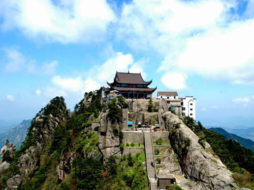 坐落在安徽省,是地藏菩薩的道場,中國四大佛教名山之一,全國著名游覽避暑勝地。九華山北俯長江,南望黃山,東監(jiān)太平湖。 它以佛教文化習(xí)俗和奇麗的自然風(fēng)光享譽(yù)海內(nèi)外,尤其在東南亞華人世界更具盛名。 九華山素有九十九峰之稱,千米以上的高峰20多座,為首的是十王峰。天臺(tái),天柱,獨(dú)秀,花臺(tái),云外峰如臺(tái)似柱,聳入云霄;蓮花,芙蓉,翠屏,以微,翠蓋峰有芙蓉出水之姿“間聳航”,“雄叫天門”等茂石更是神工鬼斧。山間秀溪縈環(huán),銀瀑飛,景色迷人。優(yōu)美傳奇的舒印月和九子泉聲更富山水之情,給人以美的享受。古稱陵陽山、九子山,唐天寶年間改名九華山;因有九峰形似蓮花而得名