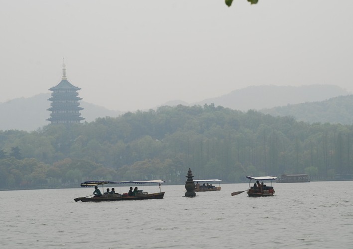 據(jù)說,三潭印月的三座石塔,就是香爐的三只腳。又因為香爐里的一爐香灰倒翻在西湖里,從此,西湖泥都成了香灰泥。