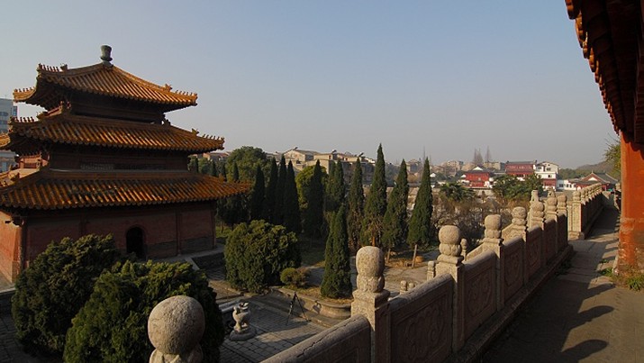 玄妙觀位于荊北路中段,其名體現(xiàn)了道家玄學(xué)思想的精髓。該觀始建于唐代,后毀于兵燹,現(xiàn)存建筑為明萬(wàn)歷十二年(公元1584年)重建,主建筑玉皇閣三重飛檐,狀似塔形,屋頂有一青銅蓮花座,猶如盛開(kāi)的金蓮,與屋頂閃爍的琉璃瓦融為一體,分外耀眼。觀后6米高臺(tái)之上建有三天門(mén)和玄武閣,均為重檐歇山頂,是為明清重建之佐證。版權(quán)所有山東聊城聊之旅國(guó)際旅行社有限公司,轉(zhuǎn)載必究!玉皇閣右側(cè)方立有一高大的石碑“九老仙都宮記”碑。此碑立于元順帝至正三年(公元1334年),是江漢平原所能見(jiàn)到的最早的碑刻,碑文記述當(dāng)時(shí)的玄妙觀主持道人唐洞云被元順帝封為八仙后的之第九仙。碑文為元代著名學(xué)士歐陽(yáng)元撰寫(xiě)、元代書(shū)法大家危素手書(shū),其史料及藝術(shù)值均彌足珍貴。