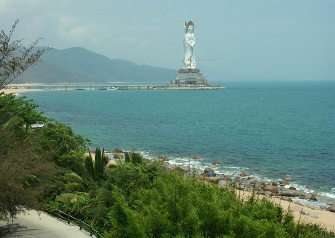 1993年中國國務(wù)院宗教局和海南人民政府批準(zhǔn)興建南山寺,并在寺前的海中塑108米高之觀音圣像。此像由海南三亞南海海上觀音功德基金會發(fā)心敬建,三尊化一體,巍峨壯觀,實乃世界造像之最。敬造工程因其規(guī)模宏偉、意義殊勝、佛理底蘊豐富,被譽為“世界級、世紀(jì)級”的佛事工程。中國佛教協(xié)會趙樸初會長欣然為圣像題名——“南海海上觀音”。