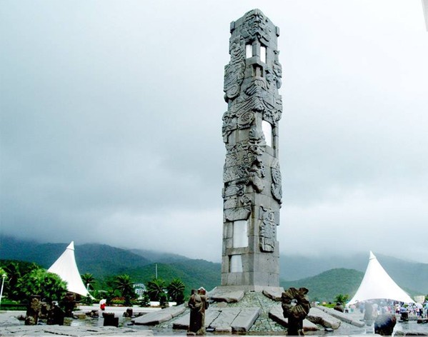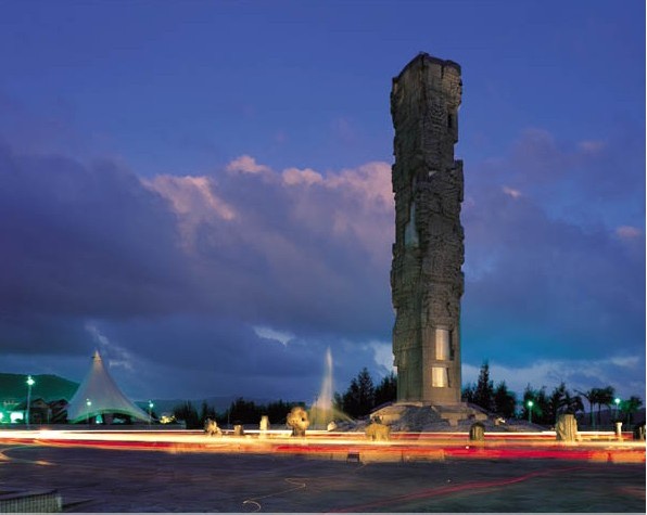 亞龍灣中心廣場,位于三亞市東南28公里處。廣場以圖騰柱向藍(lán)天升騰,以雕塑群向大地和大海延伸,其宏偉氣勢和獨(dú)特的藝術(shù)造型,以有限的藝術(shù)空間形式,引導(dǎo)我們的想象向無限的空間擴(kuò)展。廣場外圍設(shè)計(jì)的五組白色風(fēng)帆式的尖頂帳篷及大型彩色噴泉,給具有古老文化意蘊(yùn)的雕塑增添了現(xiàn)代氣息。