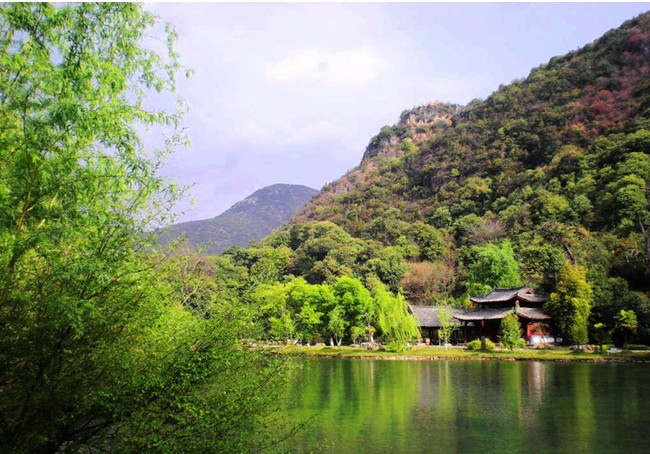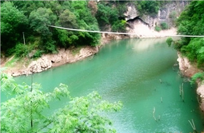 距松柏鎮(zhèn)24公里,該湖位于海拔500米的高山上,水深30米,長12公里,是一個(gè)水庫。湖口有一個(gè)高54米、寬百余丈的瀑布,還有一道鐵索甩橋,橋面晃動(dòng)得十分厲害,要走過去是需要勇氣的。在湖邊的山壁上還有兩股溫泉,現(xiàn)已修建了溫泉池,可供游人沐浴。