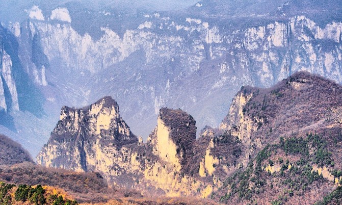 茱萸峰,俗名小北頂,峰頂有真武大帝廟、天橋、云梯。相傳,王維名詩《九月九日憶山東兄弟》:“獨在異鄉(xiāng)為異客,每逢佳節(jié)倍思親,遙知兄弟登高處,遍插茱萸少一人。”即于此峰有感而作。登上峰頂,極目遠眺,可見黃河如銀帶;俯視腳下,群峰形似海浪涌。山頂氣候多變,倏忽間風(fēng)起云生,白霧從山間咕嘟嘟地涌出,紅日隨即隱去。山峰在云霧中出沒,云騰山浮,如臨仙界。峰腰有藥王洞,深30米,直徑10米,相傳是唐代藥王孫思邈采藥煉丹的地方,藥王洞口有古紅豆杉一株,高約20米,樹干粗達三人合抱,枝繁葉茂,樹齡在千年左右,是國內(nèi)罕見的名木。另有“廚灶洞”、“閻王洞”、“黃泥洞”等十余個洞穴。景點內(nèi)的名泉一斗水,泉狀若小井,水涌平地面,終年不涸不溢。另外,杜鵑峰、浮丘峰、翠微峰、云門峰也都各具特色。