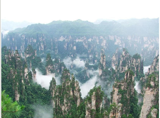 張家界以其得天獨厚的旅游資源聞名于世。以中國第一個國家級森林公園張家界和天子山、索溪峪兩個自然保護區(qū)組成的武陵源風(fēng)景區(qū)面積達(dá)369平方公里,區(qū)內(nèi)以世界罕見的石英砂巖峰林峽谷地貌為主體,集桂林之秀、黃山之奇、華山之險、泰山之雄于一體,藏賂、橋、洞、湖、瀑于一身,有“擴大的盆景、縮小的仙山”之美稱。