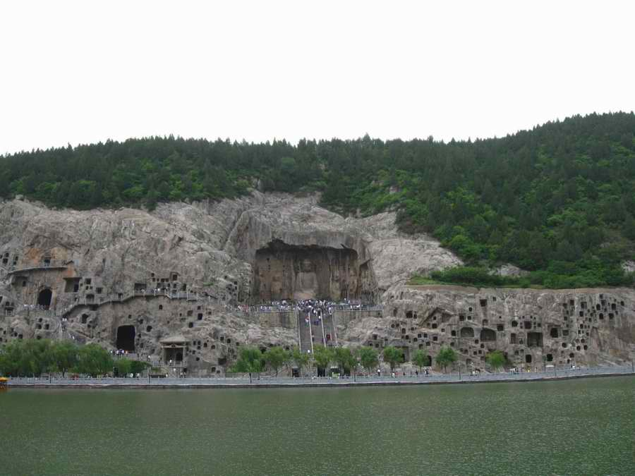 龍門石窟是中國(guó)三大石窟之一(另外兩大石窟為:山西云岡石窟、甘肅敦煌莫高窟),位于洛陽(yáng)市城南6公里的伊闕峽谷,這里香山和龍門山兩山對(duì)峙,伊河水從中穿流而過(guò),古稱“伊闕隋煬帝遷都洛陽(yáng)后,將把皇宮的正門正對(duì)伊闕,從此,伊闕便被人們習(xí)慣的稱為龍門。龍門自古為險(xiǎn)要關(guān)隘,交通要沖,向?yàn)楸冶貭?zhēng)之地。因山清水秀,環(huán)境清幽,氣候宜人,被列入洛陽(yáng)八大景之冠,唐代大詩(shī)人白居易曾說(shuō):“洛都四郊,山水之勝,龍門首焉”,此處素為文人墨客觀游勝地;又因石質(zhì)優(yōu)良,宜于雕刻,故而古人擇此而建石窟。這里青山綠水、萬(wàn)象生輝,伊河兩岸東西山崖壁上的窟龕星羅棋布、密如蜂房。