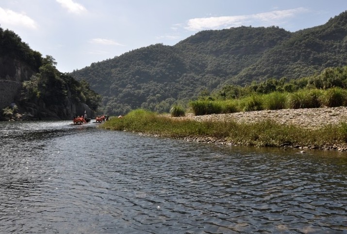 楊家溪源自柘榮東山頂和目海尖兩大高峰,繞太姥山麓,其中下 游流域大致分為九鯉溪與楊家溪,自福鼎烏杯始至鼎霞交界的湖里, 稱(chēng)九鯉溪,從蘭兜至渡頭為楊家溪。九鯉溪流程約7公里,沿途有將 軍潭、鯉魚(yú)墓、九鯉湖等名勝景點(diǎn)和新建的九鯉電站景區(qū);楊家溪流 程約8公里,有七曲十二瀨(淺急之灘),沿流潭、瀨、灘交替分布, 溪水清澈見(jiàn)底。兩岸峽谷青山郁郁蔥蔥,奇花異草紛呈異彩。樟樹(shù)、 楓樹(shù)、櫸樹(shù)、榕樹(shù),毛竹、綠竹、花竹、方竹、紫竹、黃竹、金竹, 杜鵑、黃楊、雀梅、赤楠、蘆葦?shù)染善植迹募境G啵ㄏ泺B(niǎo)語(yǔ)。版權(quán)所有山東聊城聊之旅國(guó)際旅行社有限公司,轉(zhuǎn)載必究! 尤為引人注目的是兩岸溪灘;既有罕見(jiàn)的樟樹(shù)成林,呈帶狀連綿十多 里,常年翠綠;又有蘆荻片片,春夏碧綠成茵,初冬白絮遍野;還有 萬(wàn)株連片的楓樹(shù)林,為江南面積最大的楓香林,深秋紅葉輝映,酷似 緋云停駐。緊鄰楓香林的是十幾棵大古榕樹(shù),據(jù)說(shuō)植于南宋初期,歷 經(jīng)800多年滄桑,依然翠綠成蔭。版權(quán)所有山東聊城聊之旅國(guó)際旅行社有限公司,轉(zhuǎn)載必究!其中一株樹(shù)干周長(zhǎng)12.6米,主干 中空,有7個(gè)洞口可容人入洞。乘筏順流全程約需2小時(shí),或飛奔于 礫石堆積、浪花飛濺的淺灘,或傲游在碧水瀠洄、一平如鏡的深潭; 時(shí)而飛筏破浪有驚無(wú)險(xiǎn),時(shí)而隨流飄蕩逍遙自在,瞬間變化萬(wàn)千,令人嘆絕。