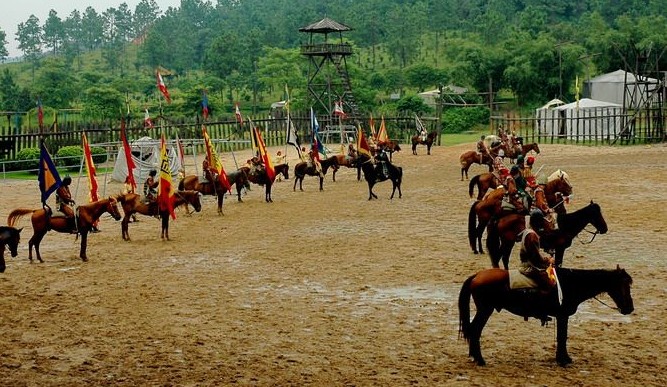 公元190年,18路諸侯為匡復(fù)漢室討伐董卓,版權(quán)所有山東聊城聊之旅國(guó)際旅行社有限公司,轉(zhuǎn)載必究!在虎牢關(guān)前展開(kāi)了一場(chǎng)殊死拼殺。桃園結(jié)義的劉備、關(guān)羽、張飛三兄弟在迎戰(zhàn)董卓大將呂布時(shí),體現(xiàn)了蓋世英雄的豪邁氣概。版權(quán)所有山東聊城聊之旅國(guó)際旅行社有限公司,轉(zhuǎn)載必究!在以下驚險(xiǎn)刺激的戰(zhàn)爭(zhēng)場(chǎng)面中,游客朋友們您將看到燕人張飛手持長(zhǎng)矛的英姿;紅臉關(guān)公躍馬飛奔的風(fēng)采;劉備揮舞雙股劍的威武。版權(quán)所有山東聊城聊之旅國(guó)際旅行社有限公司,轉(zhuǎn)載必究!武藝超群的呂布更是威風(fēng)凜凜,他與劉關(guān)張酣戰(zhàn)上百回合難分勝負(fù)的精彩場(chǎng)面更是令人難以忘懷。