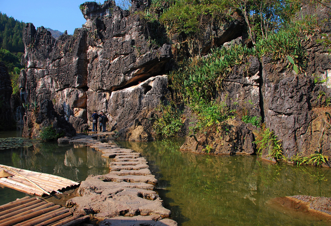 天星橋景區(qū)位于黃果樹大瀑布下游7公里處,這里主要觀賞石、樹、水的美妙結(jié)合,是水上石林變化而成的天然盆景區(qū)。
