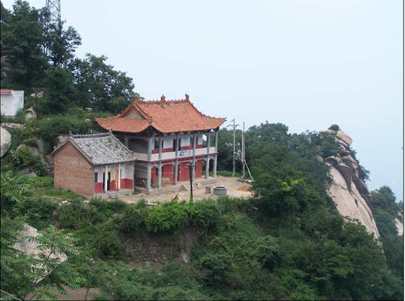 3、北斗閣。位于岳頂山巔,面南,雙層飛檐仿唐建筑,內(nèi)有四面佛塑像,重九盛會香客云集。
