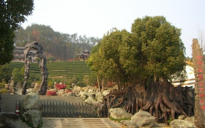中國•根博園地處浙江省西部,錢塘江源頭--開化縣,毗鄰黃山、千島湖、三清山,占地360余畝、由衢州醉根藝品有限公司投資4.5億開發(fā),工藝美術(shù)大師徐谷青先生精心創(chuàng)作,以盆景、奇石、根藝、園林古建構(gòu)成恬靜自如、天人合一的畫卷,匯聚各類植物、名貴樹種160多種,有貓頭鷹、山雀鷹、長尾藍(lán)雀、紅嘴相思鳥、白頭翁、畫眉等36種鳥類常年在此棲息,主要有福門祥光、中國根雕佛國、中國根雕博物館、中國根雕歷史人物博物館等二十多個景點,陳列盆景奇石作品4000余件,佛儒道、民間神話傳奇、歷史風(fēng)云等系列大型根藝作品2000余件,最大的有40余噸!巨型根雕五佰羅漢更是世界之最、華夏一絕,此外還展示根藝文獻(xiàn)資料、根藝大師代表作,工藝流程和醉根文化等,是一部根藝美術(shù)的四庫全書,堪稱世界根雕藝術(shù)之都!并建有浙江省首批生態(tài)環(huán)境教育示范基地、中國詩歌創(chuàng)作基地、浙江省民間文藝家采風(fēng)基地、開化縣愛國主義教育基地、浙江省婚紗攝影首選景點,浙江省文化建設(shè)示范點、衢州市科普教育基地等,這里的美,美在親近和諧、回歸自然,奇在文化與生態(tài)的珠聯(lián)璧合,它的建成書寫了世界園林的奇跡!具有“天下第一奇園”的美譽(yù)!