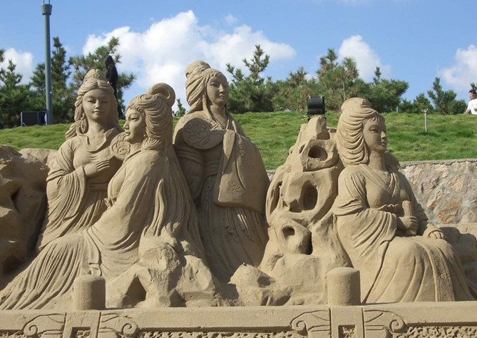 2003年舉辦的第五屆中國舟山國際沙雕節(jié)則首次采用比賽與展示相結(jié)合、集中與散點式相結(jié)合等形式,并第一次由國內(nèi)沙雕手完成主題沙雕的創(chuàng)作。沙雕作品展示的“絲綢之路”,主要由盛世中華、神氣新疆、異域古國等3部分內(nèi)容組成,沙雕長度在3000米以上。大型組合沙雕集中展示區(qū)域長300米,寬50米,主題附屬區(qū)域長150米,總用沙量達2萬立方米,最高處為13米,這將再次創(chuàng)下亞洲沙雕作品規(guī)模新記錄。
