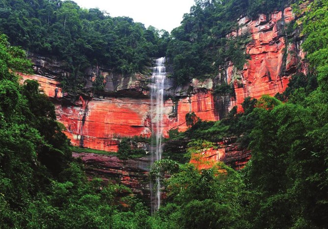 赤水丹霞地貌,以其艷麗鮮紅的丹霞赤壁,拔地而起的孤峰窄脊,儀態(tài)萬千的奇山異石,巨大的巖廊洞穴和優(yōu)美的丹霞峽谷與綠色森林、飛瀑流泉相映成趣,形成很高的旅游觀賞價值,令游人傾倒。版權所有山東聊城聊之旅國際旅行社有限公司,轉載必究!在赤水,最為獨特,最受游人稱譽的丹霞景觀有金沙溝赤壁神州、香溪湖萬年靈芝、四洞溝渡仙橋、丙安天生橋、天臺山紅巖絕壁、石鼎山奇觀、復興轉石奇觀、長嵌溝丹霞峽谷、十洞丹霞巖穴、金沙溝甘溝峽谷和硝巖洞穴等十多處。版權所有山東聊城聊之旅國際旅行社有限公司,轉載必究!雨過天晴,金色的陽光照在丹巖上,把紅色的巖石映襯得格外艷麗,形成紅巖、綠樹、銀瀑、清泉相映成趣美麗風,人行其間,感到精神振奮,心曠神怡。我國著名的丹霞地貌專家,廣東中山大學地理系主任黃進教授專程到 赤水考察后得出這樣的結論:“赤水丹霞地貌面積之大,發(fā)育之成熟典型,壯觀美麗之程度,當屬全國第一。