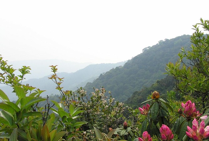 磨盤山國家森林公園,因山體形如磨盤而得名,是1989年經(jīng)國家林業(yè)部批準,1993年5月完成了規(guī)劃設計,整個公園占地7232.1公頃,海拔1260 米至2614.4米,內有百花常年開放,特別是品種多樣的杜鵑更是獨樹一幟,高山草甸,森林湖泊,云海茫茫,珍異禽獸,構成了公園獨特的風景,是新平的精品風景區(qū)之一。