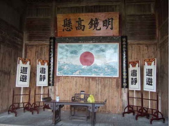 現(xiàn)存浮梁古縣衙,建于清朝道光年間,距今 170年,占地64495平方米(95畝),規(guī)模宏偉,是我國江南唯一保存完整的封建時(shí)代縣級衙署,有“中國第一縣衙”、“江南第一衙”之美稱。現(xiàn)保留中軸線上的照壁、頭門、儀門、衙院、大堂、二堂及三堂,基本保持了縣衙原有風(fēng)貌。整座建筑坐北朝南,錯(cuò)落有致,廊道相接,渾然一體,莊嚴(yán)和輕松并存,厚重與俏雅生輝。游歷古縣衙,在欣賞“奇妙”建筑藝術(shù)的同時(shí),也感受到封建衙門官府威嚴(yán)氣派。衙署內(nèi)陳列了古代官服、刑具、十八般兵器、訊杖、官轎、夾棍,“帝制早廢,縣衙猶存”,“珍貴史跡,進(jìn)門有益”,游客至此,既可以領(lǐng)略古代衙府的風(fēng)貌,了解封建社會(huì)衙門的歷史、政治、文化知識;也可以寓教于樂,過把古代五品知縣癮,置身其中,穿越歲月時(shí)空走廊,寓教于游玩之間。