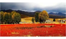 秋季(9月—10月)是稻城一年中最有詩意的季節(jié),秋天的稻城是炫麗多彩的,稻城外的紅草地與黃色的萬畝楊樹林讓人置身于色彩的海洋,與藍(lán)天白云交相輝映。這個季節(jié)的夜晚和清晨觀看神山如夢如幻。在靜靜的傍河,在金色的楊樹林,在一見傾心的紅草灘……青楊樹林只有兩種顏色:金黃金黃的樹,蔚藍(lán)蔚藍(lán)的天。無論在什么角度,取景框里永遠(yuǎn)是一副絕美的圖畫。重訪紅草灘,幾乎屏住了呼吸。紅草像一片火焰在燃燒...