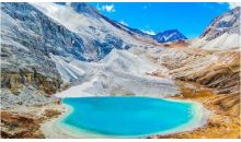 牛奶海,又叫俄絨措,古冰川湖,狀如水滴,四周雪山環(huán)繞,湖水清瑩碧藍(lán),山止成瀑,以其玲瓏秀雅水色翠藍(lán)而著名。牛奶海在央邁勇的山坳里,呈扇貝形,中間是碧藍(lán)的雪水,周邊則是一圈乳白色環(huán)繞,這圈乳白色大致就是牛奶海名稱的由來。近岸邊的水略有些黑色,下面都是遠(yuǎn)久植物的沉積,往里面是淺綠色的一帶,再深處便是碧藍(lán)色的水面,藍(lán)得透亮。海子微微有些流動,陽光透過云層在上面不停地掠過,于是它也如寶石般變幻著光彩,時而黯然,時而耀眼,時而又飄忽不定。海子邊是片片草甸和碎葉叢,軟軟的,像塊綠色的絨布,小心地呵護(hù)著這塊寶石。草甸上面是堅硬石壁,還有沙石灘,顯得格外冷峻。 牛奶海是美麗的,遠(yuǎn)遠(yuǎn)望去,仿佛碧玉鑲嵌在雪山之中,純凈安詳。純凈的湖水給人以平和安寧的心境,而藍(lán)湛湛的海子并不透明,顯得神秘莫測。