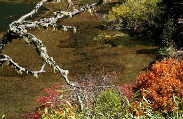 從跑馬山腳左側(cè)近泥巴山或駟馬橋處上山,穿過杜鵑花、紅白刺玫花叢錯落的山徑,經(jīng)吉祥嘛尼堆5處,約6小時,就到了海拔4100米的冰川遺跡--五色海。五色海面積0.11平方公里,三山陡峭環(huán)立。東山崖上瀑布飛流,珍珠萬顆直瀉湖中,湖水澄澈似鏡,朝陽初臨,瑞氣四集,飛瀑倒映湖中,玉兔捧佛隱去,陽光五彩繽紛。