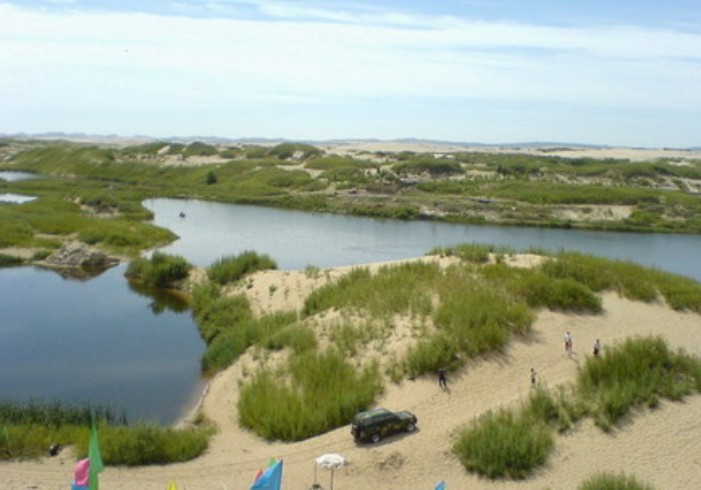 玉龍沙湖位于內(nèi)蒙古赤峰市翁牛特旗烏丹鎮(zhèn)境內(nèi),國家AAA級景區(qū),距赤峰市90公里。旗政府所在地烏丹鎮(zhèn)區(qū)與該景區(qū)有三級油路相通。玉龍沙湖度假區(qū)集沙漠、沙地、古松、怪石、奇峰、濕地、草原、湖泊為于一身,5萬畝草原與茫茫無邊的科爾沁沙地相連,沙地中有一眼清泉,泉水噴涌近1米高,每小時噴水?dāng)?shù)百噸,在沙漠中積水成湖。