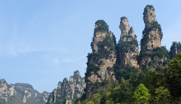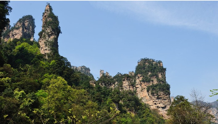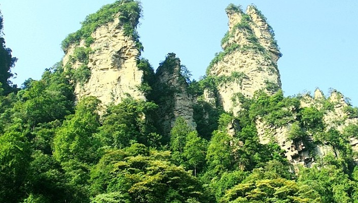 十里畫廊山清水秀,繁花似錦,百鳥爭鳴。境內(nèi)景物造型奇特:若人,若神,若仙,似林,似禽,似獸的石英砂巖峰林在云霧中時隱時現(xiàn),變化萬千。早在明代就有人寫下“人游山峽里,宛如畫圖中”等佳句。大自然這位雕塑大師,以鬼斧神工之國,在十里畫廊塑造了稀世珍品,它是藝術(shù)的世界,童話的世界和神秘的世界,為中外游客叫絕。