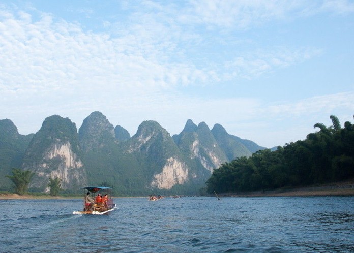 漓江發(fā)源于興安縣貓兒山,從桂林到陽(yáng)朔83公里水程,漓江像蜿蜒的玉帶,纏繞在蒼翠的奇峰中,造化為世界上規(guī)模最大、景色最為優(yōu)美的巖溶景區(qū)。乘舟泛游漓江,可觀奇峰倒影、碧水青山、牧童悠歌、漁翁閑吊、古樸的田園人家、清新的呼吸——一切都那么詩(shī)情畫(huà)意。