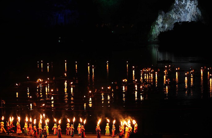 世界上最大的山水實(shí)景劇場,全球最具魅力的導(dǎo)演,傳唱最久遠(yuǎn)的民族山歌,史無前例的桂林漓江風(fēng)情巨獻(xiàn)。大型桂林山水實(shí)景演出《印象劉三姐》是錦繡漓江-劉三姐歌圩景區(qū)之核心工程,由桂林廣維文華旅游文化產(chǎn)業(yè)有限公司投資建設(shè)、我國著名導(dǎo)演張藝謀出任總導(dǎo)演,國家一級編劇梅帥元任總策劃、制作人,以及兩位年輕導(dǎo)演--王潮歌、樊躍的加盟,數(shù)易其稿,歷時(shí)三年半努力制作而成。她集漓江山水風(fēng)情、廣西少數(shù)民族文化及中國精英藝術(shù)家創(chuàng)作之大成,是全世界第一部全新概念的"山水實(shí)景演出"。演出集唯一性、藝術(shù)性、震撼性、民族性、視覺性于一身,是一次演出的革命、一次視覺的革命。